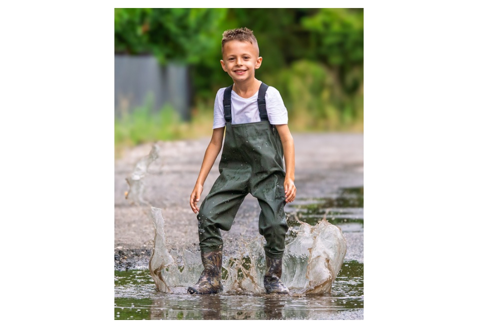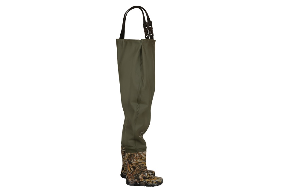 NOVINKA na Slovensku! Brodiace čižmy špeciálne určené pre deti v atraktívnej zeleno olivovej farbe. Značka PROS patrí medzi najväčších výrobcov nepremokavej obuvi v Európe. Čižmy sú vyrobené z originálneho materiálu PLAVITEX s hrúbkou 0,7mm (zosilnený PVC/Polyester) 700g/m2. PLAVITEX je extrémne odolná technická tkanina odolná voči mechanickému poškodeniu, ktorá je doplnená dvojitými podlepenými švami zabezpečujúcimi dokonalú odolnosť proti pretečeniu. Samozrejmosťou sú elastické traky s rýchloprackami, odolné pevné podrážky na topánkach a taktiež certifikát produktu spĺňajúci požiadavky Európskej normy EN343 o vodeodolnosti.